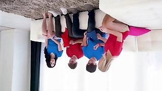 2 stunning lesbo girls swap their stepdads for crazy foursome sex