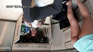 Thirsting hubby tongues sweet pussy of his long legged mega-slut Allie James on kitchen table