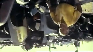 Outdoor lesbian strap on dildo action with Eva Angelina