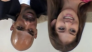 Ebony man makes a shy brunette groan as her lover watches