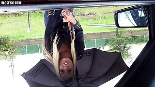 Cute blonde fucks with a stranger and makes him oral pleasure in the car