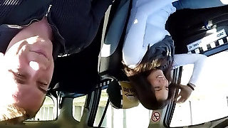 Aroused girlfriend stops her boyfriend's car to blow him with intensity