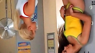 Blonde and brunette soccer players in scorching lesbian sex scene