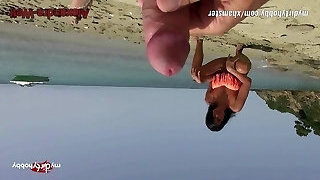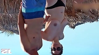 Voyeur on public beach. Sex with nymph with silicone Boobs