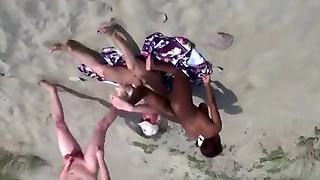 Beautiful lady and two horny dudes enjoy foreplay on the beach when I spy them