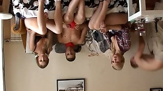 After a couple of drinks these friends end up with a knuckle inwards their pussy and a couple of cocks in both holes