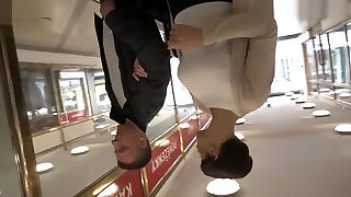 Mature wife Oksana droplets on her knees for two stiff cum guns