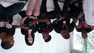 Ebony guys lined up outdoors to gangbang a bitchy white girl
