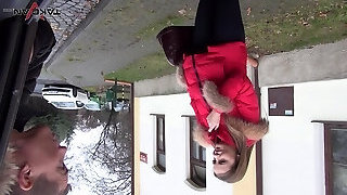 Bright looking in her red jacket biotch Candy is picked up for car sex