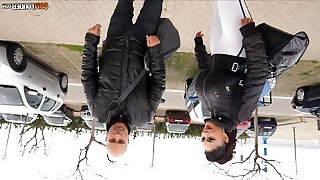 Oral loving French tramp sucks dicks in public in a car