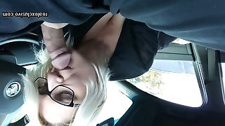 Blonde Riley Rose screwed in the truck with her glasses on