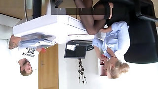 Light-haired nymph gets fucked during an interview by a hot stud