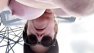Kinky blonde solo model in a thong frigs her cooch until orgasm outdoors