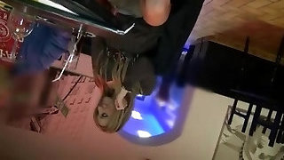 Husband watching hit plump Latina Vivianne Desilva in undergarments fucks with bartender