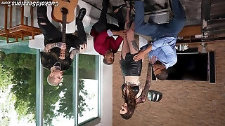 Rocker's wife turns him into a cuckold by fucking two phat black cocks.