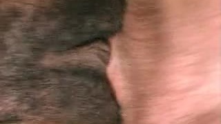 Massive cumshot from big white cock to ebony pussy fuck-hole