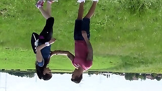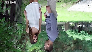 Lovely teenage Naomi Bennet is eager for dirty threesome outdoor hookup