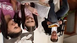Kinky Brunette Schoolgirl Inhaling Gloryhole Dick