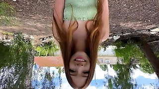 Video of uber-cute Myra Moans posing outdoors and getting fingered