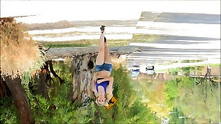 Outdoors video of pliable Reese pleasuring her shaved pussy