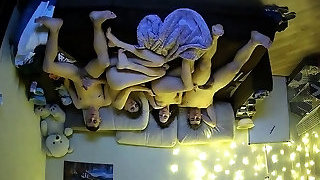 Amateur threesome on hidden webcam