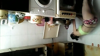 My caboose stepmom in the kitchen (hidden cam)