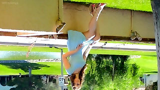 This cute first-timer babe is toying with her tight pussy in public and she is not shy
