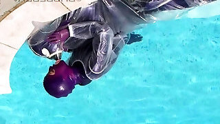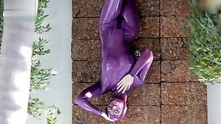 Restrain Bondage In A Latex Black Catsuit