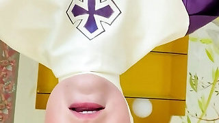 Big-titted amateur milf wears latex uniform and high heels