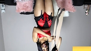 Uncircumcised Pin-Up Lingerie Stockings Try-On
