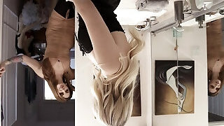 Blonde big tits Secretary jacks on desk in nylons and high-heeled shoes