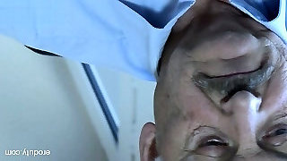 Guy banged old hairy tailoress on the floor