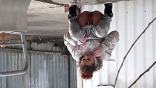 Seller Pees Outdoors, Shows Ass And Colleague Cums On It