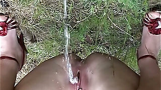 Pissing & Squirting In My Stockings Outside