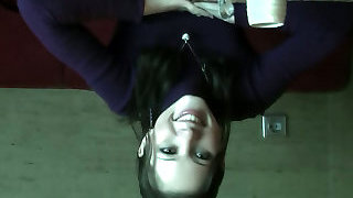 Horny fair haired teen swallowed a cup of tea and set to suck big sugary man meat