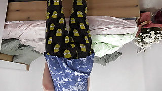 A huge-boobed cougar with a fat ass is getting well-prepped to meet her lover, trying on chocolate Santa for her big boobs. PAWG.