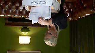 Silver hair beauty spreads her legs broad to put a big dildo deep inside