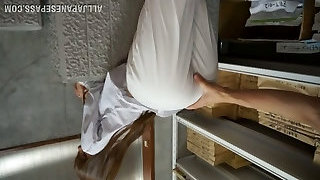 Horny Japanese hoe lets some guy rub his prick against her ass