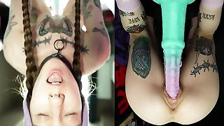 Fucking Giant Dildo Balls Deep in Her Ass